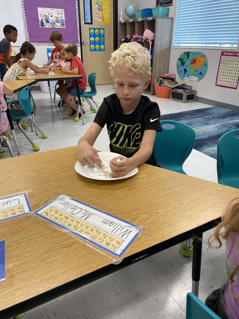 We continued our unit on the seven continents by focusing on Europe during this activity. We talked about the different notable structures that are found in Europe such as the Eiffel Tower, the leaning tower of Pisa, and castles. After looking at some pictures our class got to try replicating those buildings using marshmallows and toothpicks!
